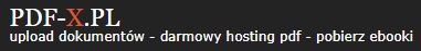 Największy spis książek i porównywarka cen tylko na pdf-x.pl! Chciałbyś zainteresować czytelnika swoim dziełem wgrywając w formacie PDF kilka pierwszych stron książki w celach promocyjnych? Chcesz udostępnić krótki dokument podglądowy, plan zajęć lub pomoce naukowe w kilka sekund? Potrzebna Ci darmowa biblioteka ebooków, notatek i dokumentów do pobrania? A może chcesz zmienić rozszerzenie pliku z doc na pdf? Dołącz do grona czytelników artykułów, komiksów i ebooków w Polsce oraz dziel się swoimi tytułami. Konwertuj pliki i pobieraj bez ograniczeń. Exploruj serwis w poszukiwaniu ukrytych i trudno dostępnych plików pdf, dziel się swoimi e-książkami i oceniaj pdfy wgrane przez innych odwiedzających. Wgraj i czytaj online notatki, eseje, opracowania, instrukcje, zapiski na uczelnie, teksty piosenek i cytaty w pdf. W przypadku gdy zauważysz w naszym serwisie ebooka który narusza prawa autorskie , skontakuj się z nami a my usuniemy zabroniony materiał w ciągu 24 godzin.
